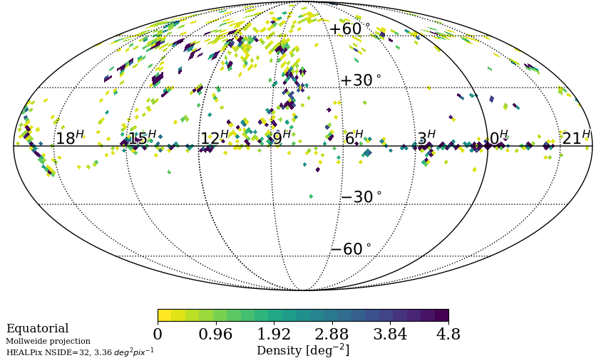 The numbers of BHM CSC BOSS spectra in DR19, and the sky distribution of observed CSC target are illustrated in the figure and table below.