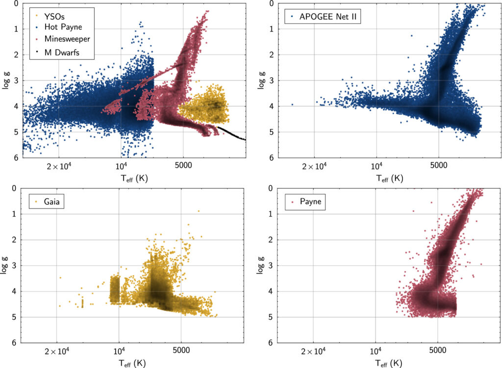 BOSSNet uses an extensive training set (Figures 1 & 2) resulting in a comprehensive coverage between 1700 < Teff < 100,000 K and 0 < log g< 10, to ensure BOSS Net can reliably measure parameters of most of the commonly observed objects within this parameter space.